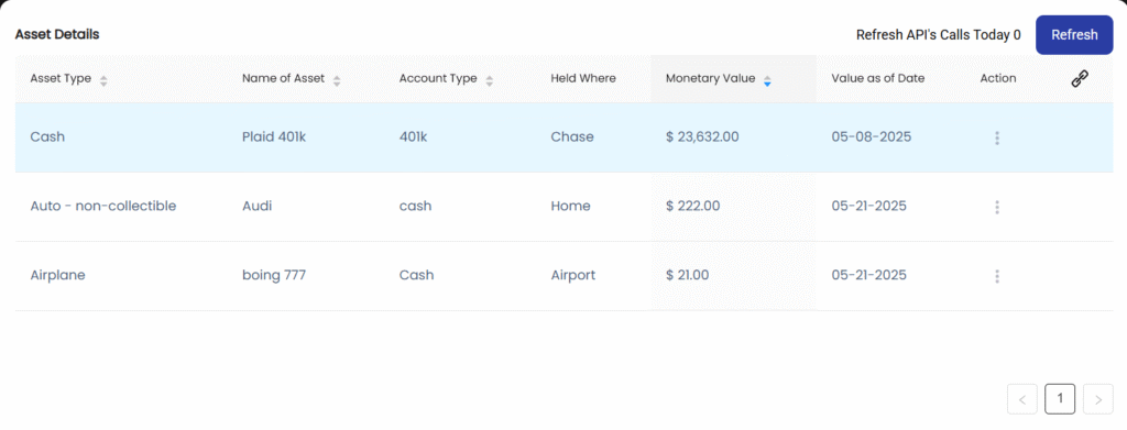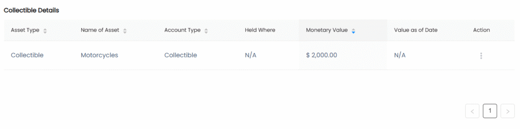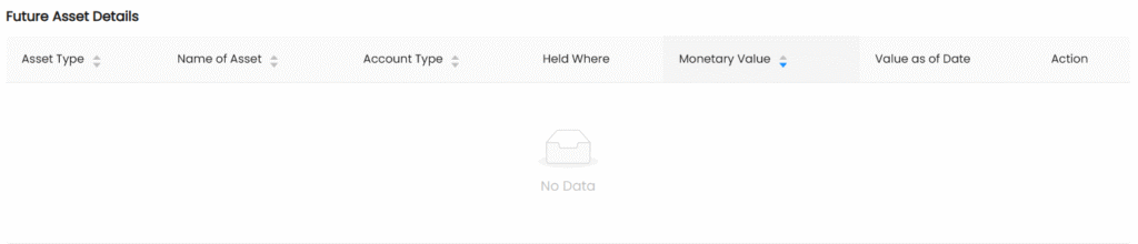8. User checks the Future Asset listing, The remaining amount of the asset assigned to the goal will be listed here.
