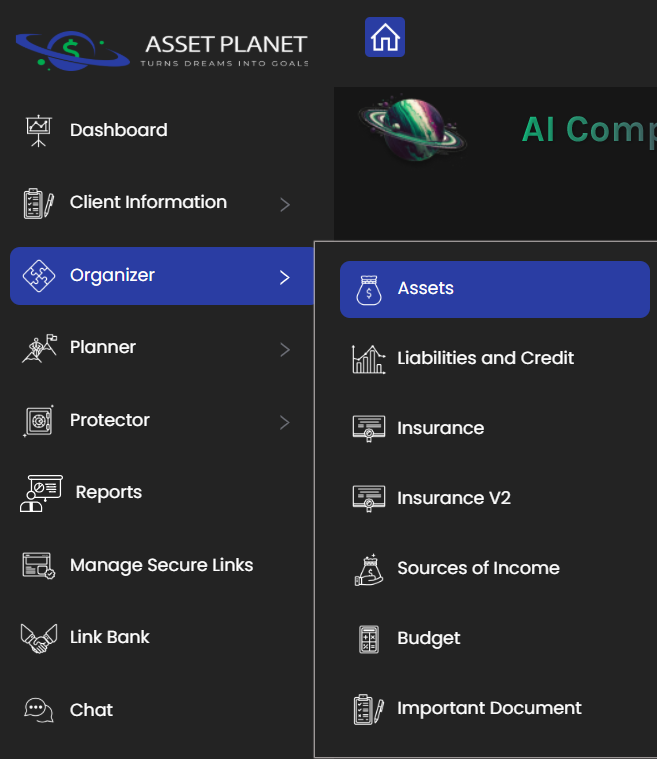 User clicks the “Add Asset” button on the Asset Overview Page.
