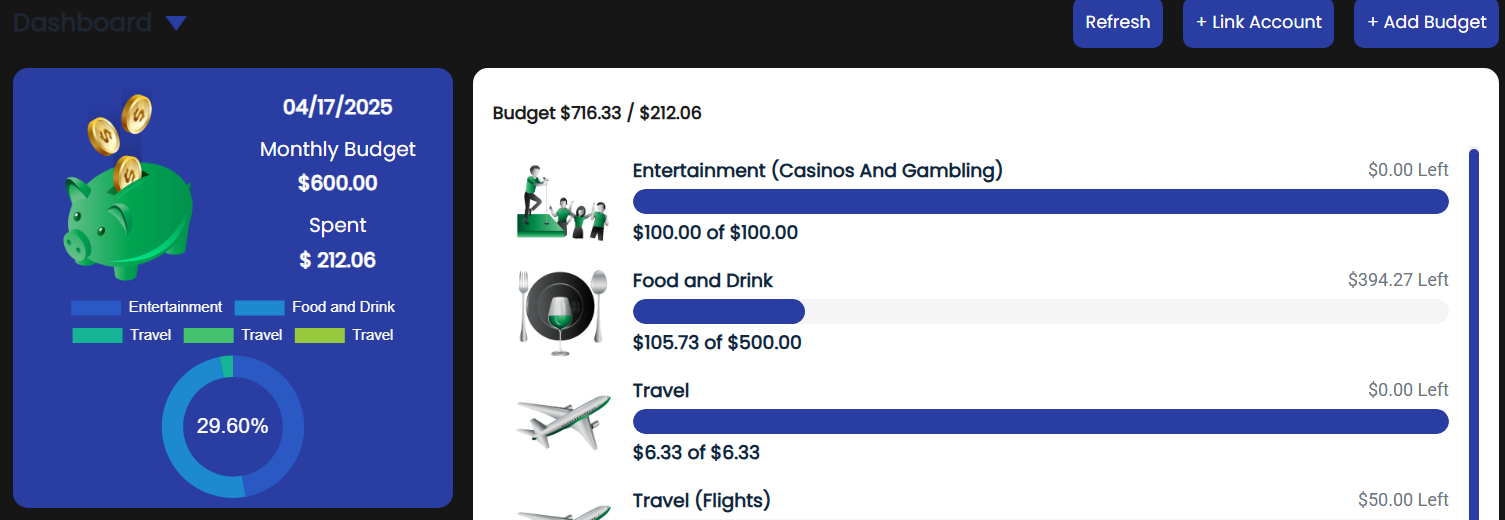 - Budget Overview by Category: Quickly assess how your spending aligns with your budget across all categories.