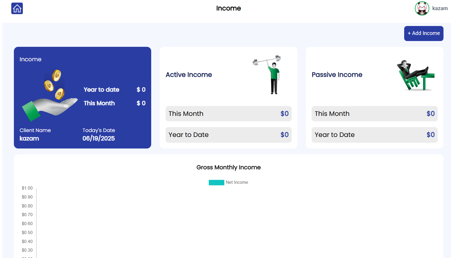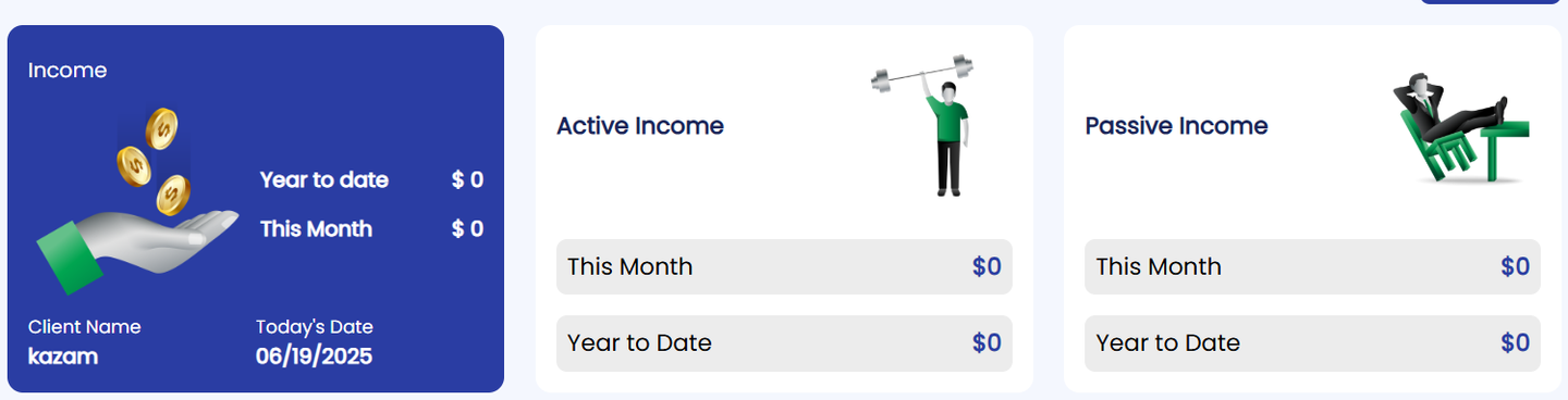 To view a categorized summary and detailed breakdown of all income sources, including active and passive income.