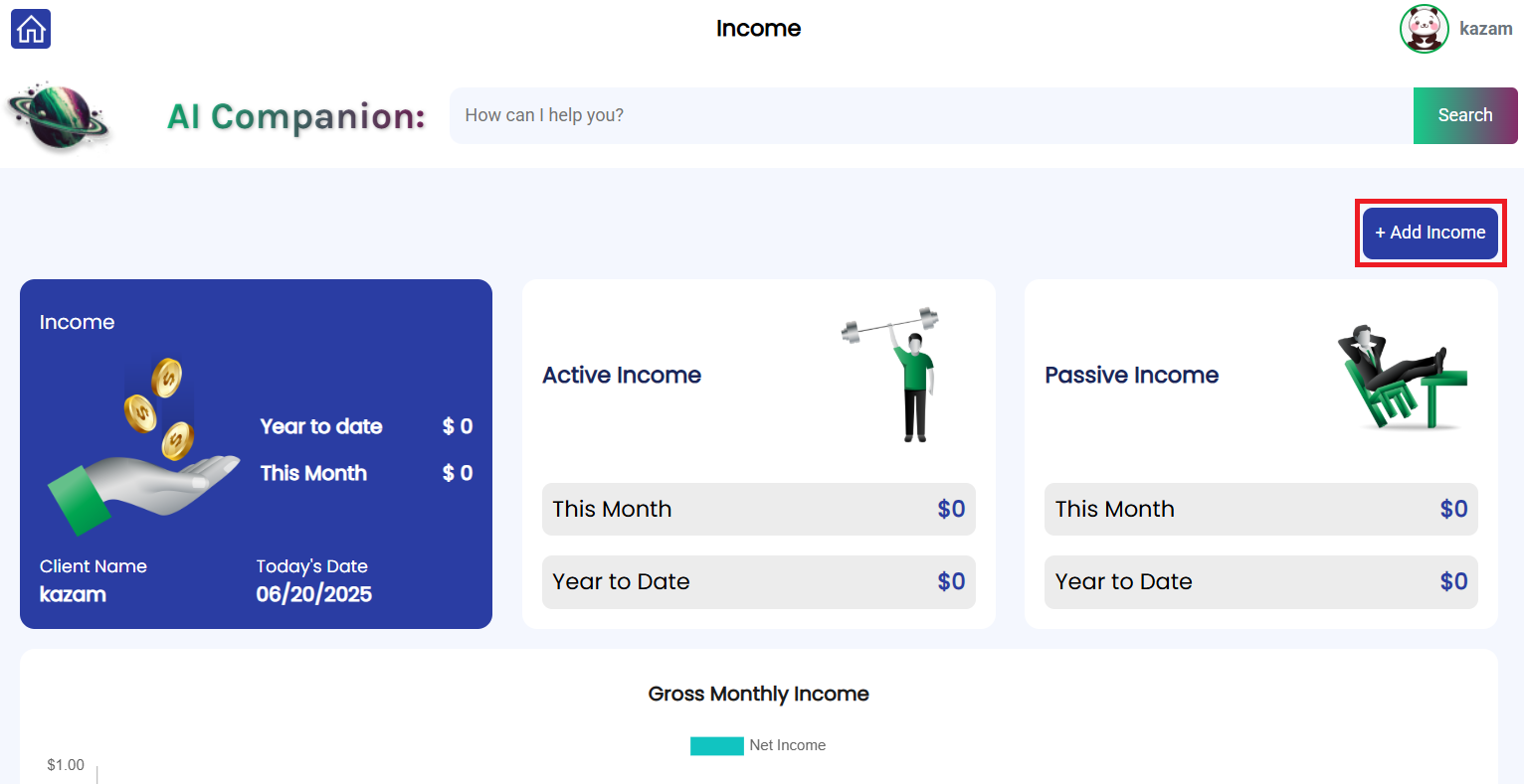 4. User scrolls down to a Gross Monthly Income graph, with: