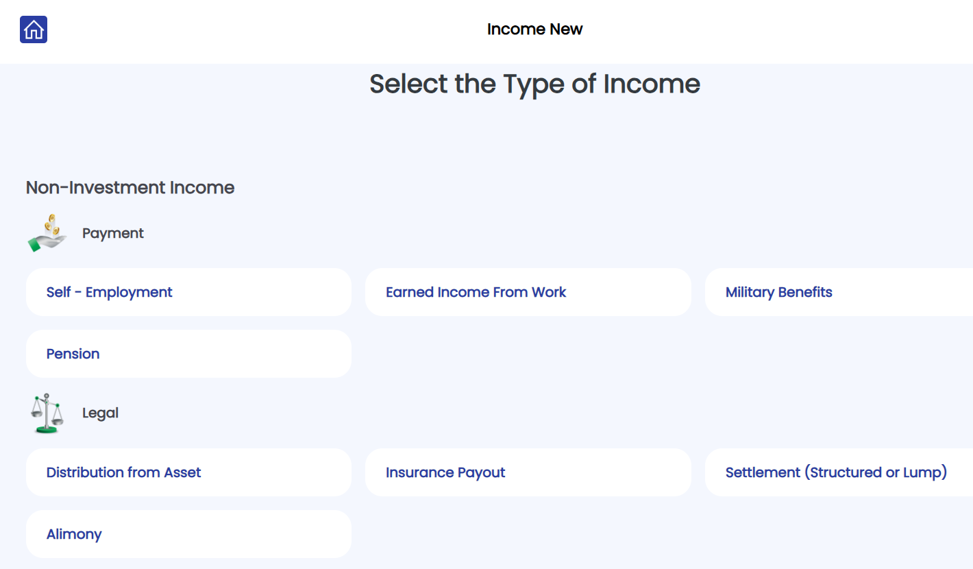 - Income Types (e.g., Non-Investment Income, Investment Income)