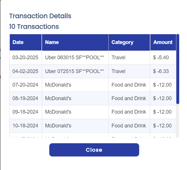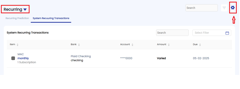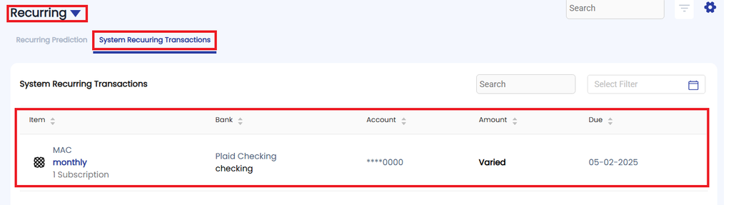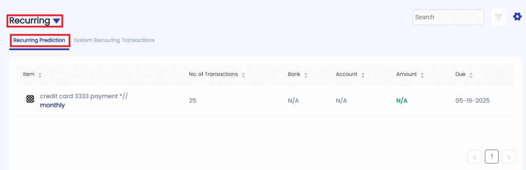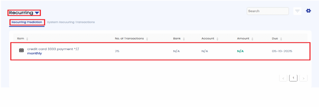 - Automatic Recurrence Detection: Recurring transactions are identified based on consistent patterns in name and amount.