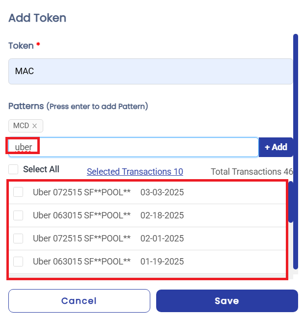 - Custom Tokens for Pattern Matching: Users can assign tokens to recognize recurring patterns, enhancing the system’s ability to detect repeat transactions accurately.