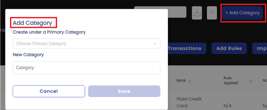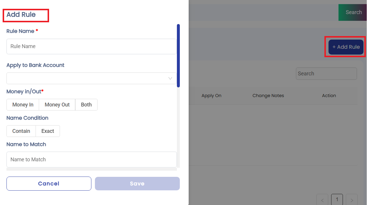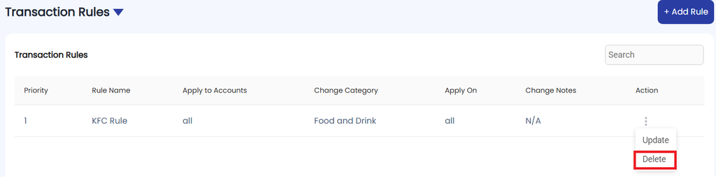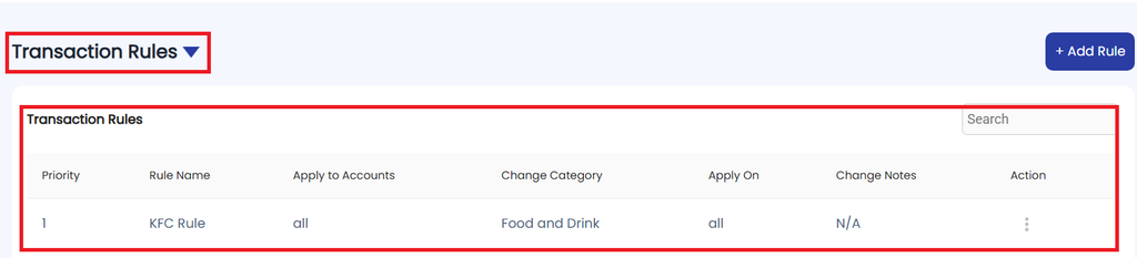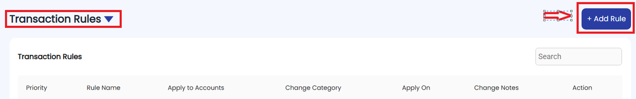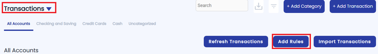 - From Transactions tab → “Add Rules” → “View All Rules”